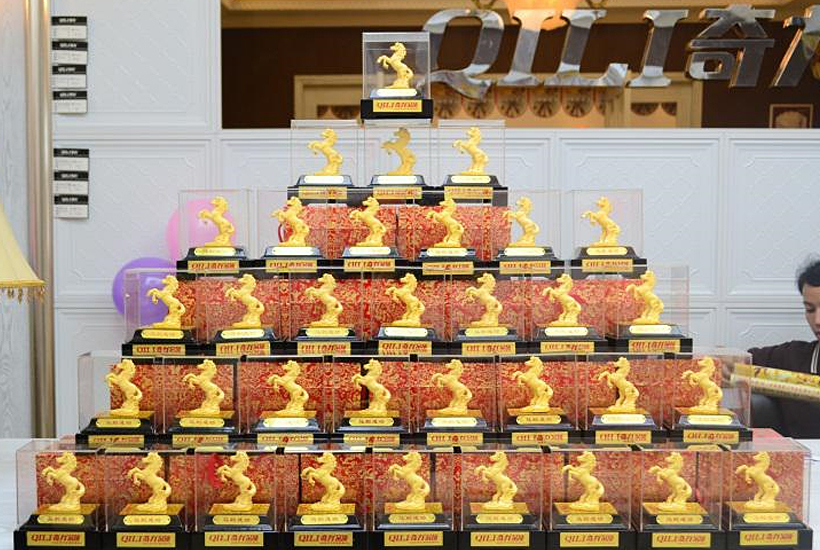 直供專車抵達(dá)奇力總部后,業(yè)主們就迫不及待得趕往公司展廳參觀。富麗堂皇的美式風(fēng)尚展廳,高貴奢華、精致典雅。一進(jìn)展廳,業(yè)主們的所有關(guān)注點(diǎn)便投射到產(chǎn)品上。他們紛紛掏出手機(jī),親手記錄下奇力的精美產(chǎn)品與展廳。
