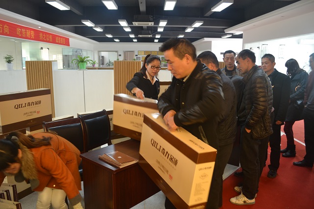 直供專車抵達奇力總部后,業(yè)主朋友們就迫不及待得趕往公司展廳參觀。而奇力的工作人員們早已整齊容裝,靜候來賓。引領(lǐng)盛澤朋友們領(lǐng)取豐厚而不菲的禮品后,漫步走進富麗堂皇的美式風(fēng)尚第二季全新展廳,高貴奢華、精致典雅置身其中。來賓朋友們紛紛掏出手機、相機,記錄下奇力的精美產(chǎn)品與展廳。