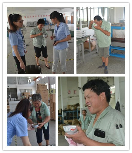 7月27日下午,行政部拿著清涼的綠豆湯進(jìn)入酷熱的車(chē)間,為車(chē)間員工帶去清涼問(wèn)候。濃稠的綠豆湯汁,涼爽甘甜,奇力家人們端過(guò)這一碗綠豆湯,各個(gè)臉上洋溢著笑容,如此盛夏,奇力公司現(xiàn)場(chǎng)卻是笑聲連連,場(chǎng)面溫馨甜蜜。