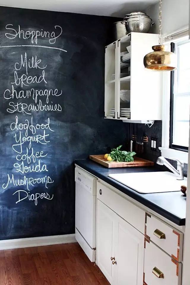廚房里裝個(gè)黑板墻,不知道是不是玩出新高度的一種,既可以學(xué)習(xí),又可以安利各種菜單。有沒有覺得很不錯(cuò)啊,隨手來個(gè)幾筆,無論大人小孩都愛上這里。