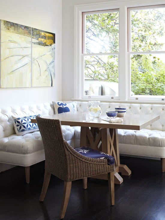 小編推薦:柔軟的座位擁有客廳沙發(fā)般的舒適享受,木質(zhì)的餐桌散發(fā)著田園的自然味道,窗外綠枝婆娑,如果還覺得單調(diào)一副小掛畫即可以給空間不同感覺。