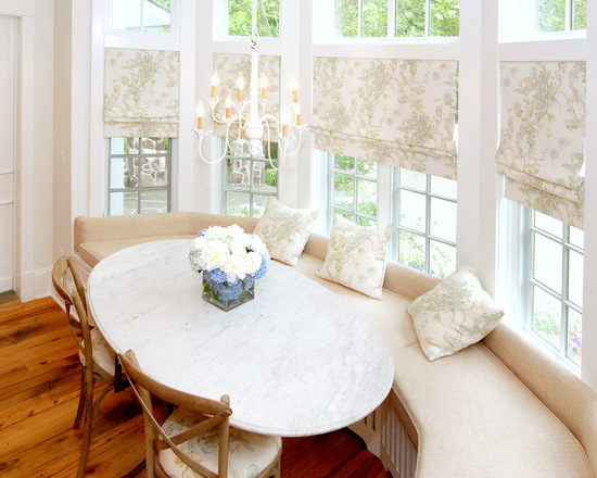 小編推薦:見慣了方正的設(shè)計(jì),圓弧形的卡座似乎讓人耳目一新,清新的碎花窗簾搭配暖意洋洋的米色卡座沙發(fā),家居的怡人清涼十足。