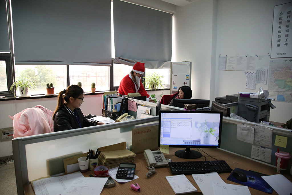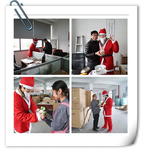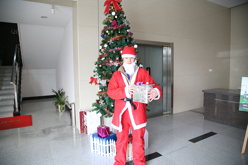 奇力家人也不落人后,在這個(gè)歡樂的節(jié)日里,身穿紅袍、頭戴紅帽的白胡子圣誕老人出現(xiàn)了,雖然他沒有駕著鹿拉的雪橇,沒有爬煙囪,但是他帶著禮物、歡樂、幸運(yùn),為大家送來了祝福。