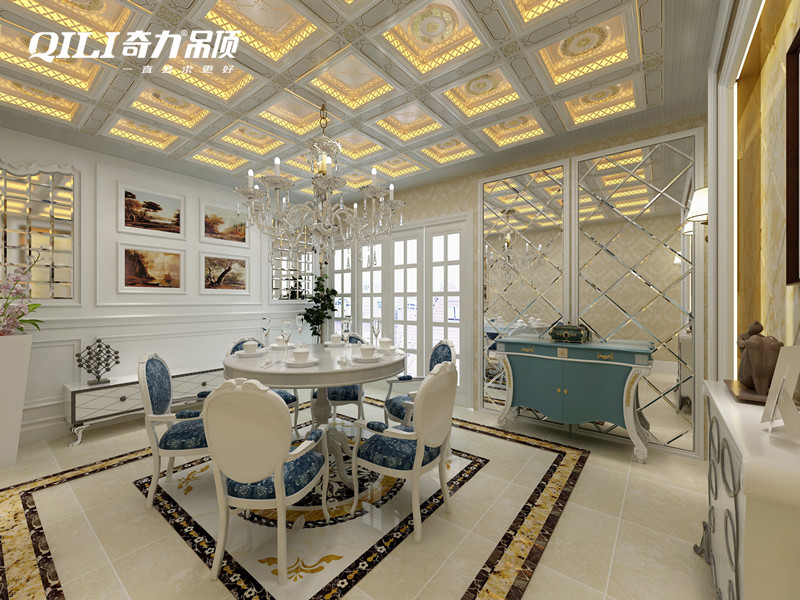 靈活性是餐廳這個(gè)空間的一個(gè)主要特點(diǎn),可以使用懸掛造型吊燈來(lái)下壓空間,增加餐廳情趣,或選擇用燭光來(lái)渲染空間。