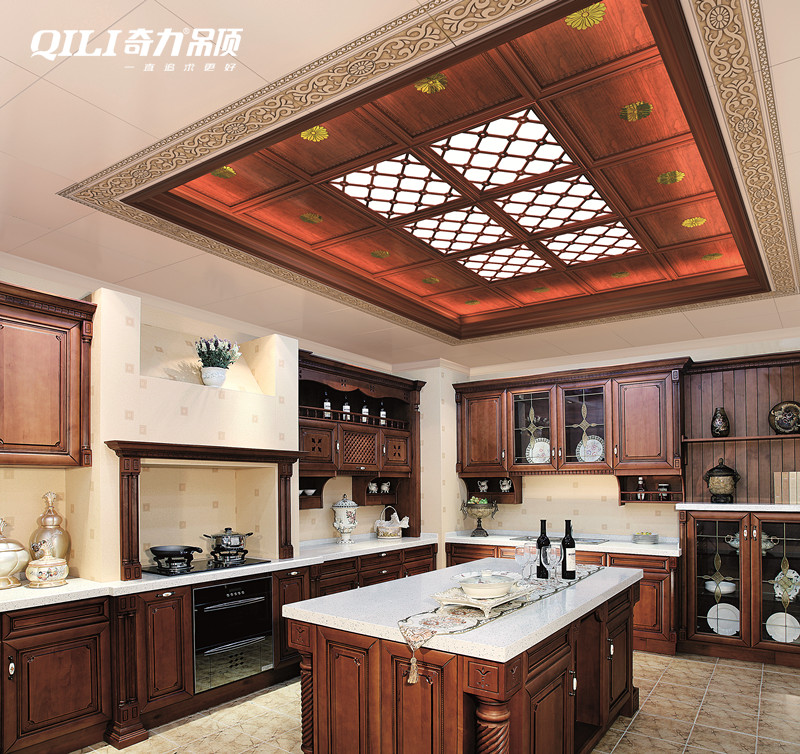 仿木紋色的吊頂和櫥柜門是最經(jīng)典的搭配