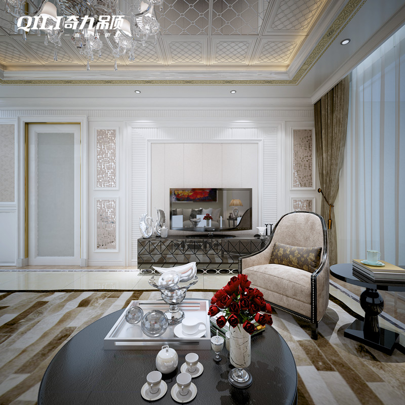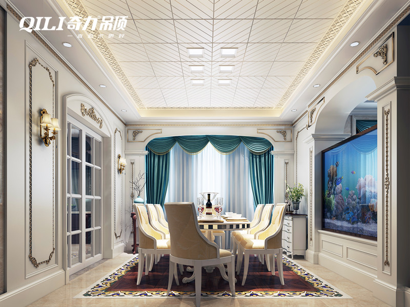 在美式、法式或者古典風(fēng)格里,踢腳線(xiàn)和門(mén)套、天花等等形成視覺(jué)上的統(tǒng)一效果,起到裝飾性作用。