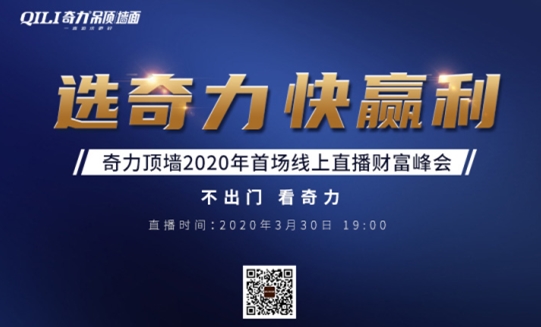 “選奇力 快盈利”奇力頂墻2020首場線上直播財(cái)富峰會(huì),2020年3月30日19:30,不必出門,在線考察奇力,也期待您的加入!