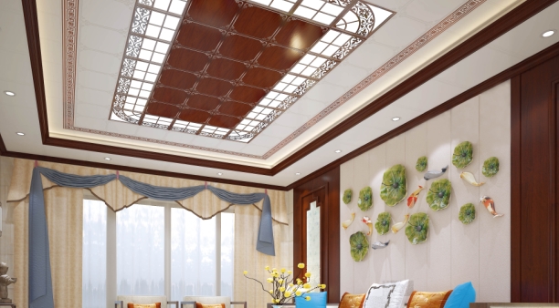 這個客廳是中國傳統(tǒng)風格和現代風的融合,保留了中式風格的精髓,與現代潮流的碰撞創(chuàng)新,加入集成吊頂,演繹另一番美妙。