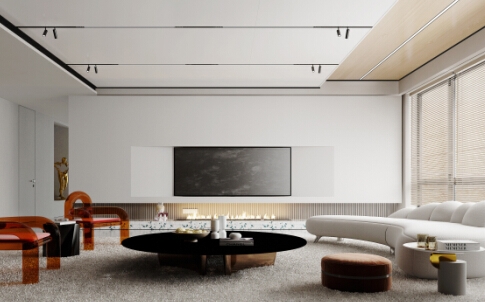 黑色波浪板在巖紋板與木紋板之間時尚過渡,這樣搭配出來的沙發(fā)背景墻,既擁有肌理的細節(jié),還給空間帶來了層次感與節(jié)奏感。