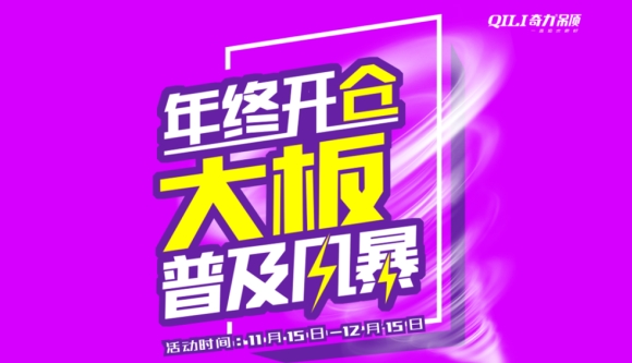奇力“年終開倉(cāng) 大板普及風(fēng)暴”大勢(shì)啟動(dòng)! 活動(dòng)時(shí)間:11.15-12.15 詳情請(qǐng)咨詢奇力全國(guó)各大專賣店
