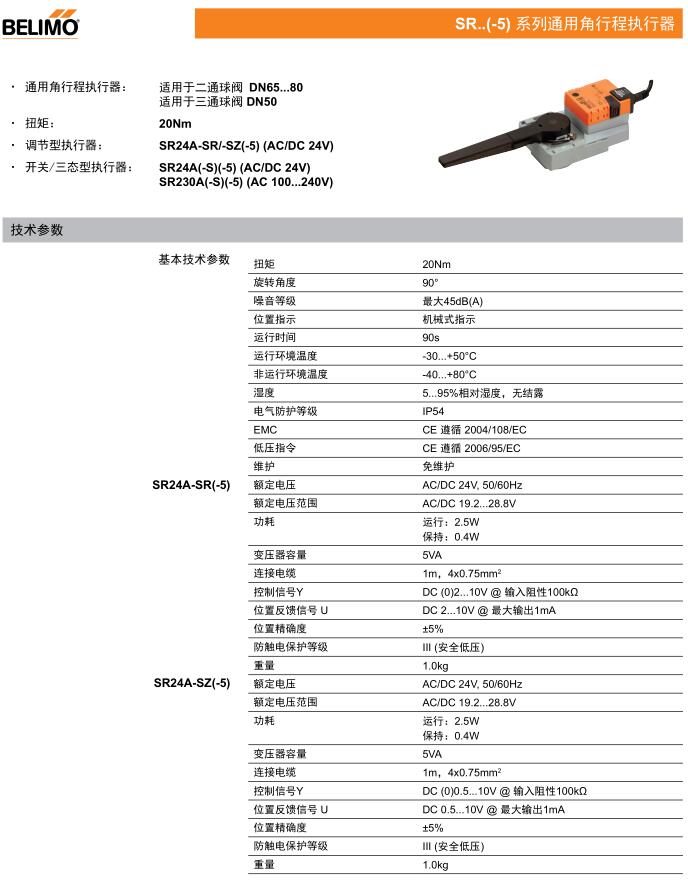 • SR(-5)系列通用角行程執行器