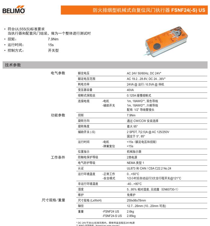 • FSNF24防火排煙型機械式自復位風門執(zhí)行器
